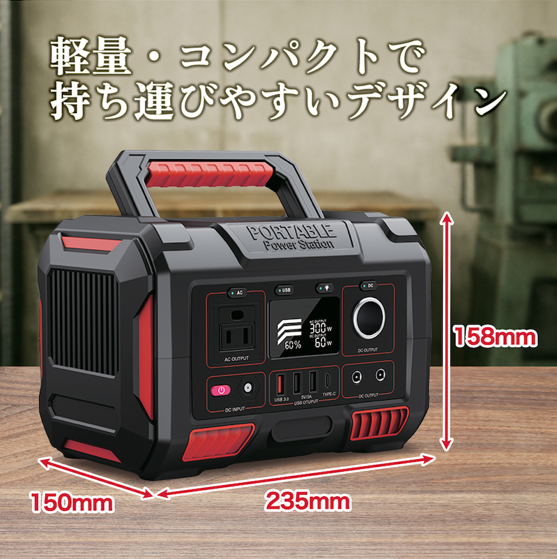 | USB出力 | USB ×2 5V/2A USB 3.0×1 5V~12V 最大18W Type-c×1 5V~12V 最大18W |